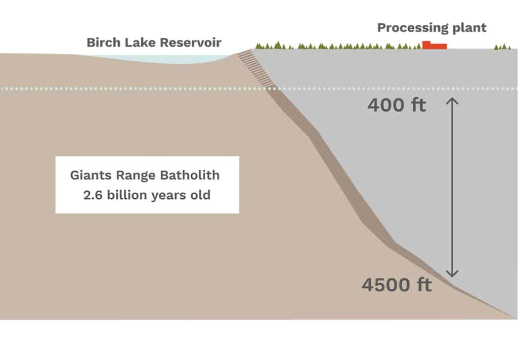 这将是自1967年伊利先锋矿关闭以来明尼苏达州的第一个地下矿。其地表冲击比同等生产能力的传统露天矿小80%。我们将在地表下400到4500英尺之间采矿。