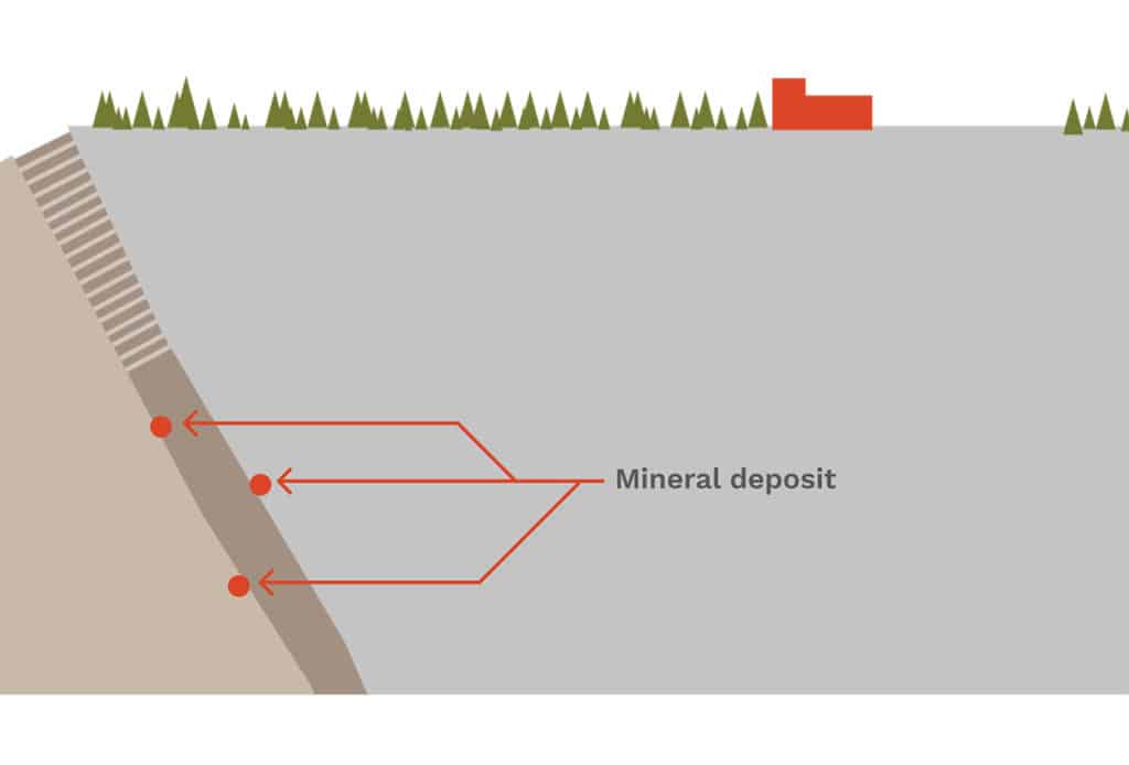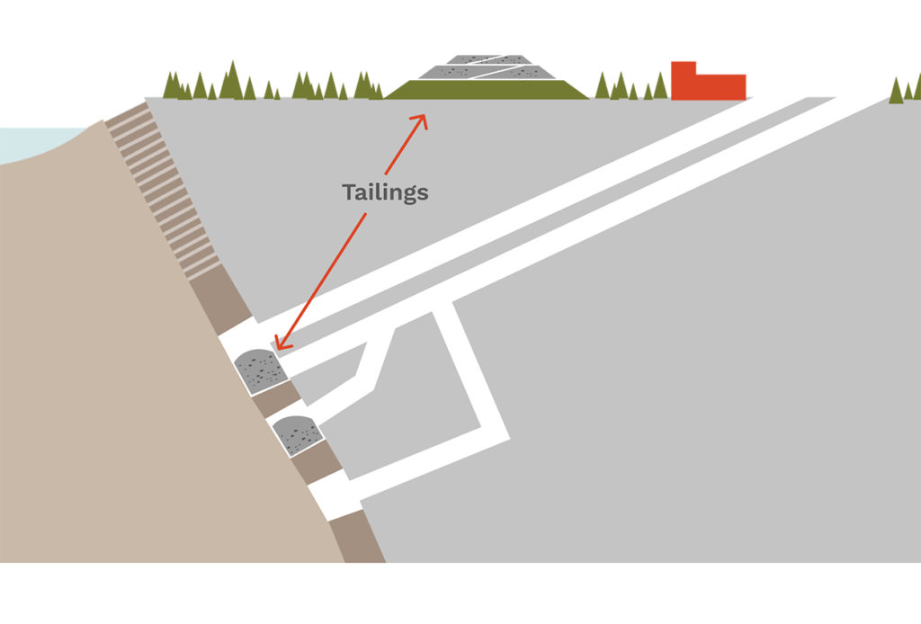 当你从矿石中提取矿物质时,“残渣”是剩下的。有一个地下矿井,一直到一半的尾矿将储存在地下的采场中巩固了回填。这有助于稳定矿山在生产期间和生产后。的另一半将被压实成一个干堆同时利用当地的土壤和植被。不需要建造尾矿坝,完全消除了大坝溃坝的风险。