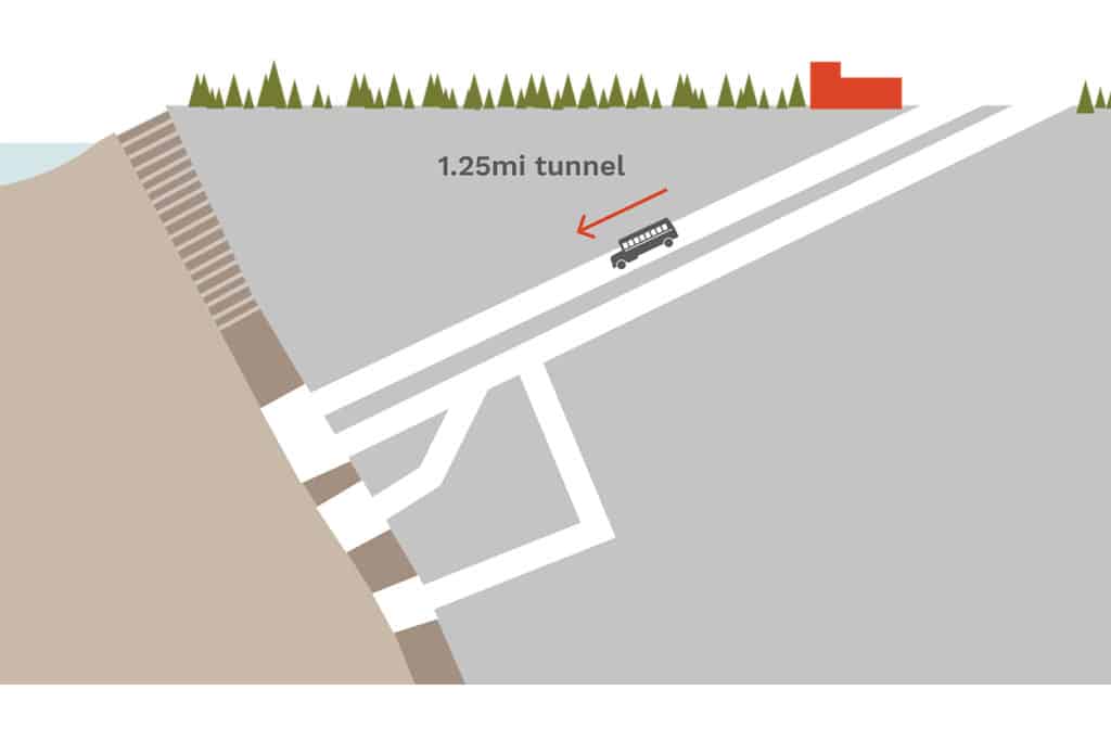这也是地下矿井的美丽之处。首先,我们将矿山员工从伊利和巴比特送往现场,以减少当地交通。然后,矿工们将被公共汽车运送到两个1.25英里长的隧道中的一个矿井。不再把矿工放下矿井。此外,地下矿区有良好的照明和通风设施,如休息室和办公室。