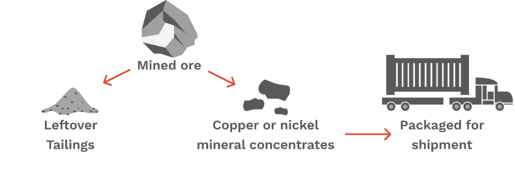 在加工厂,金属将通过浮选过程从破碎的矿石中提取出来。矿物浓缩物一旦被提取出来,就会被装在半卡车上的密封集装箱里。浓缩过程中使用的水将在现场闭环系统中重复使用,这是另一项有助于保护环境的技术进步。
